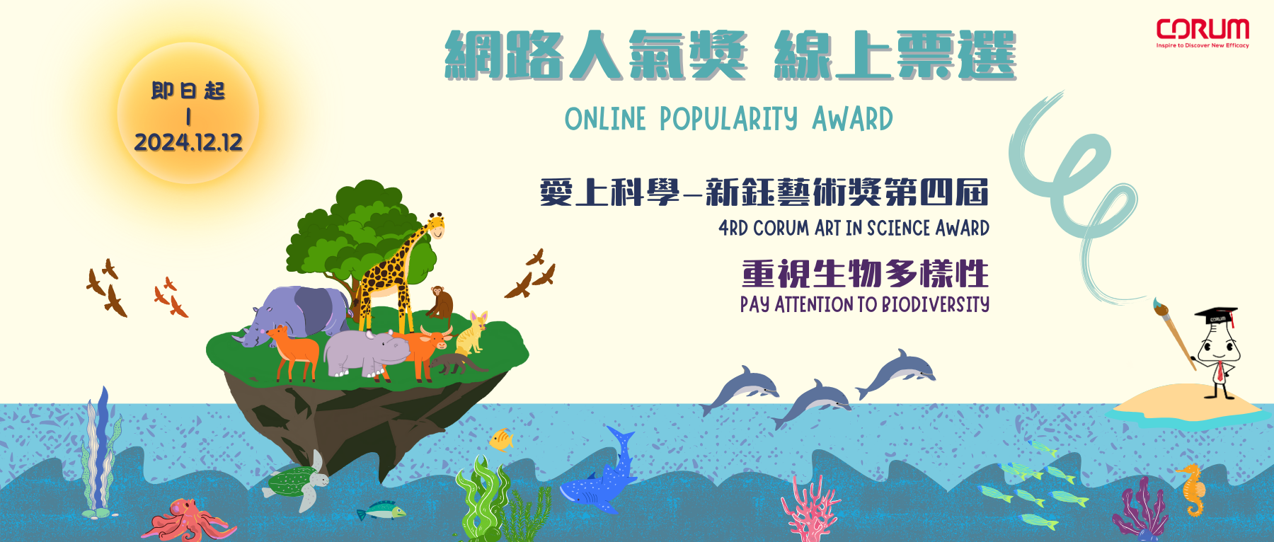 Corum “Art in Science” Award is now in its 4th year with the theme this year is “Pay Attention to Biodiversity”. We have organized seven on-site briefings and received 71 submissions. As the event grows, its influence continues to expand. We are also delighted to welcome the participation of Xin Chuan's Hsinchu branch this year.